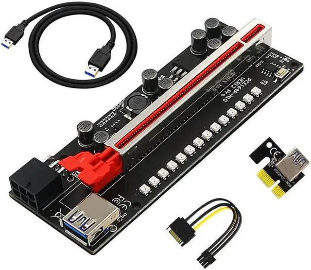 6 PCS PCIE Riser VER12 Pro Cabo Riser PCI Express X16 Extender PCI E USB Riser 6Pin Adapter Card SATA 15pin for BTC Miner Mining