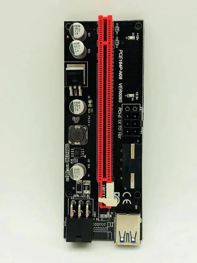 009S PCIE RISER 6PIN 16X Adapter with 2 LEDs Express Card Sata Power Cable and 60cm USB 3.0 Cable for BTC Miner Antminer Mining