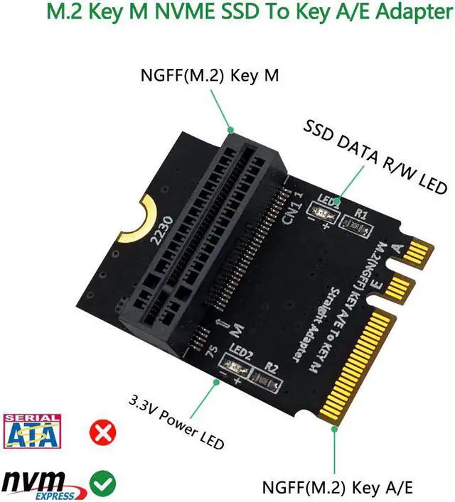 Add On Card M. 2 NVME Adapter SSD PCIE M2 NGFF Key M to M. 2 Key A/E Adapter Vertical Installation for 2280 M2 NVME SSD Riser Card