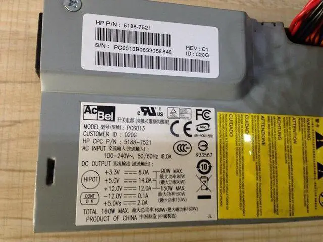 Power Supply Unit 5188-7521 PC6013 DPS-160QB-1 A For Pavilion Slimline Part Numbers: 5188-7521 Model Numbers: PC6013 Or DPS-160QB-1 A Max Power: 160Watt