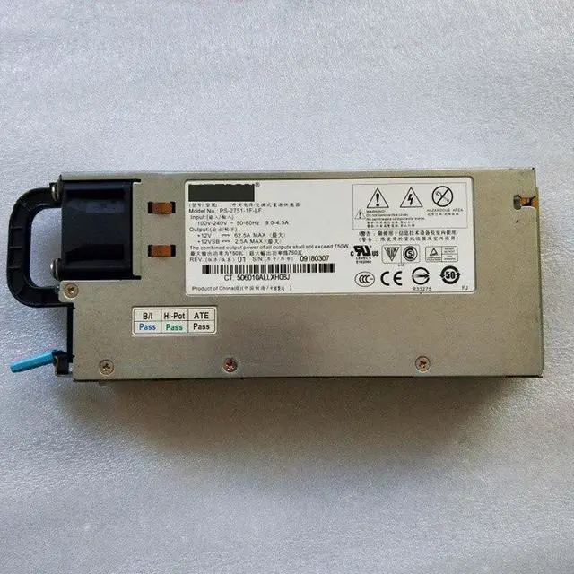 750W Redundant Power Supply PSU PS-2751-1F-LF For ThinkServer RD240 Model No. PS-2751-1F-LF Max Power 750 Watt Type Redundant Input 100-240V~, 9- 4.5A, 50-60Hz Output + 12.0V - 62.5A MAX; +12VSB - 2.5A MAX Compatible system For ThinkServer RD240
