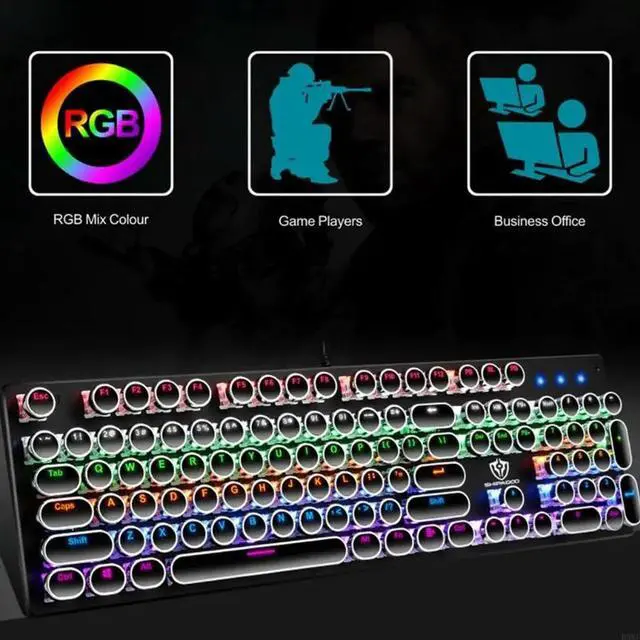 • Mechanical Gaming Keyboard 104-Key Blue Retro Round Keycap Typewriter