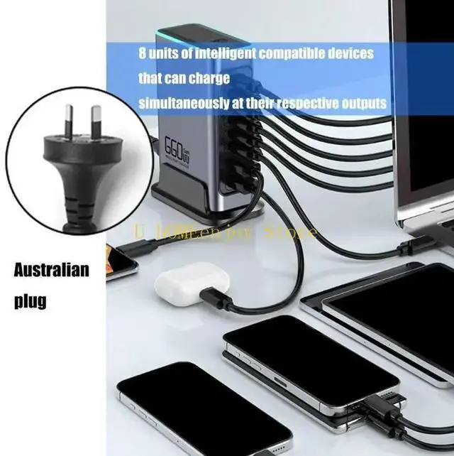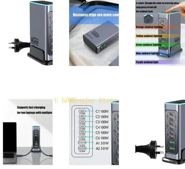 • Powerful Gallium Nitride Charging Station 660W 8 Port Support PD3.0 QC3.0 Adapte