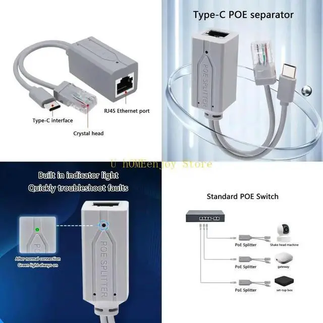 IEEE 802.3 af PoE Splitter USB C 48V To 5V 2.4A For NonPoE Device Compatibility for Settop Box Gateways Shaking Head Camera