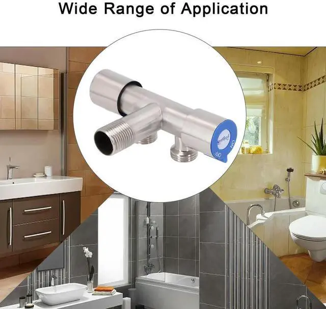 • Double Handle Faucet Triangular Valve Angle Stainless Steel Double Handle Bathroom Washing Machine Toilet Parts