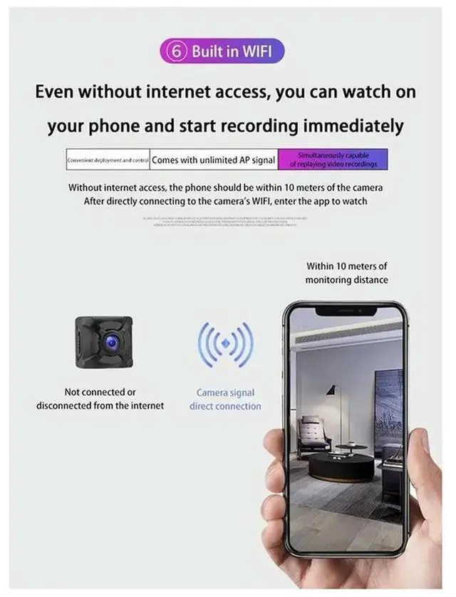 • X5 Wireless 4K Camera Portable Camcorders Home 1080P No-Plug Monitor Security Rechargeable