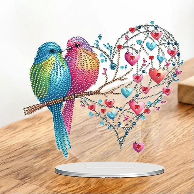 • Acrylic 2D Flat Print DIY Love Birds Diamond Painting Art Tabletop Decorations