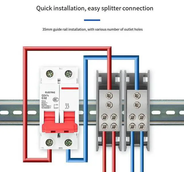• 18mm Width 1 In 4 Out DIN Rail Terminal Blocks 690V Connector Distribution Block For Electrical Equipment Tool Accessory