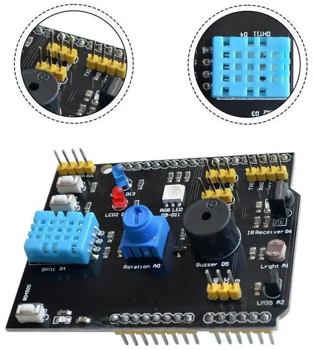 • 9 In 1 Expansion Board Temperature And Humidity Sensor Buzzer Compatible For Test Measurement Tool Accessory
