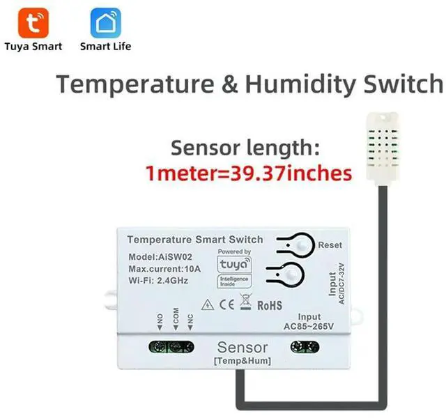 • Tuya Temperature And Humidity Sensor Switch With External Probe For Reliable Monitoring
