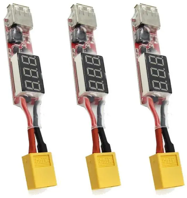 • 3X 2S-6S Lipo Lithium XT60 To USB Charger Converter With Voltage Display Adapter Board