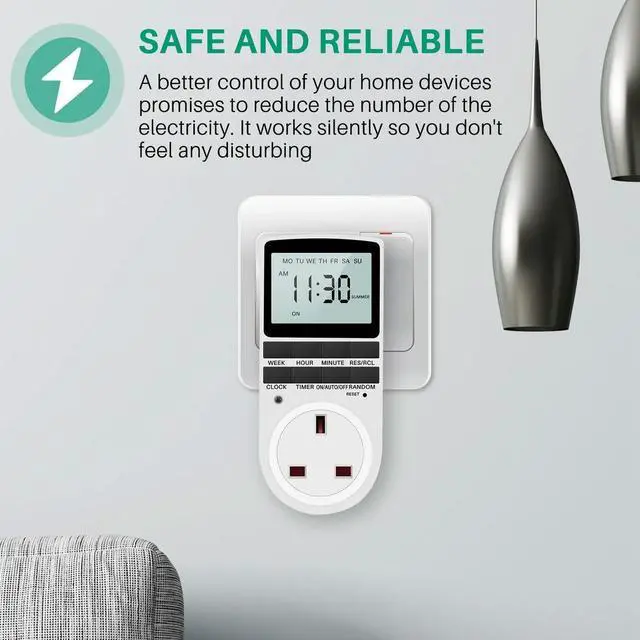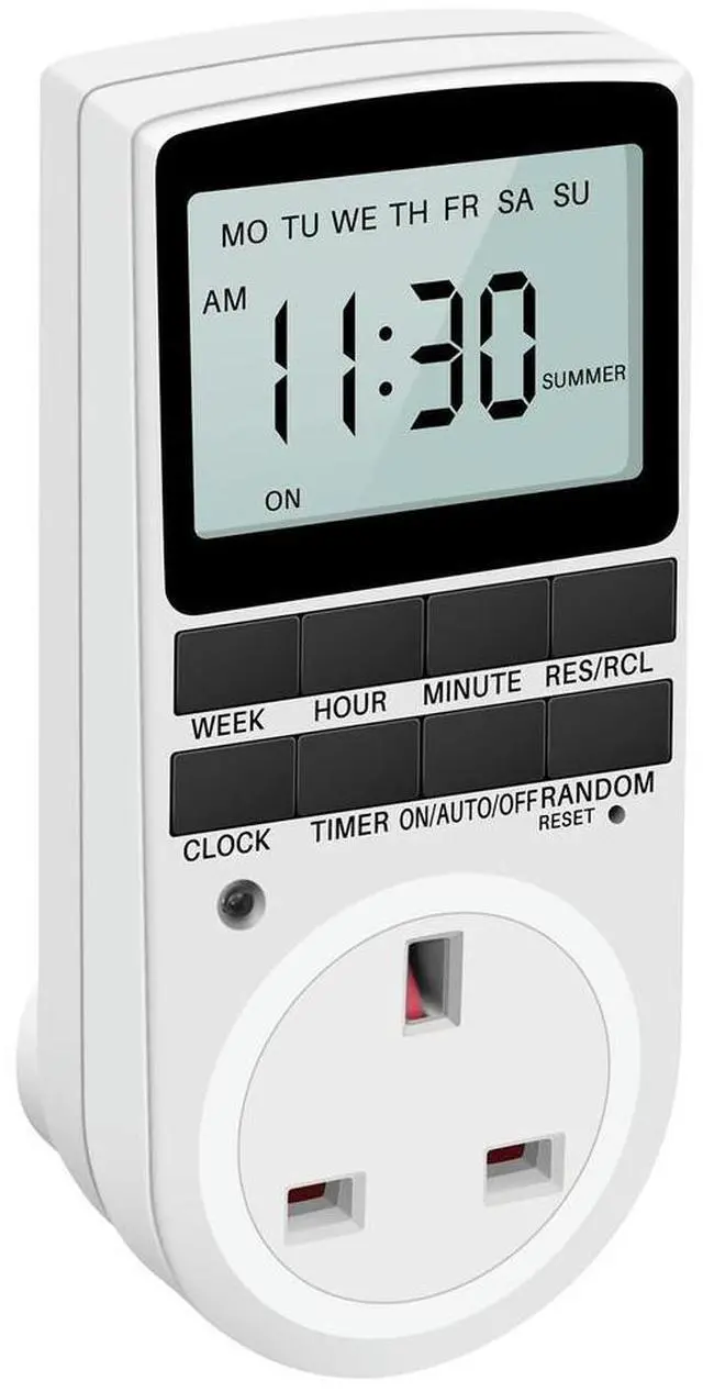 • Uk Plug Digital Timer Plug Socket, Electrical Programmable Plug In Timer Switch For Light, B And More, With Large Lcd