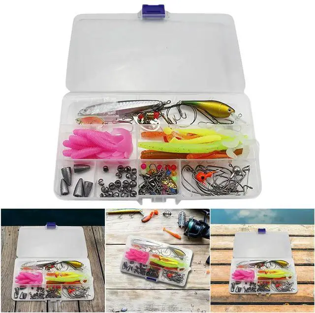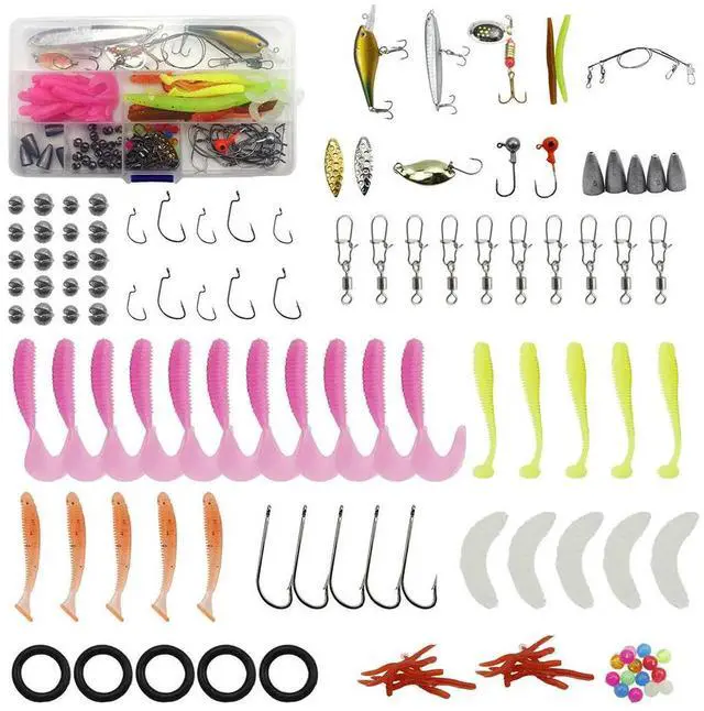 • 115pcs Fishing Lures Kit Soft and Hard Bait Jig Hooks Fishing Accessories Gifts for Men