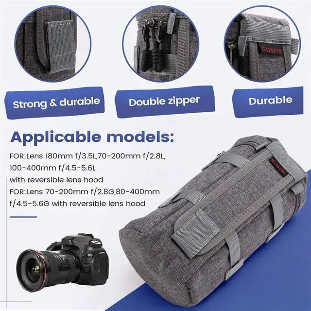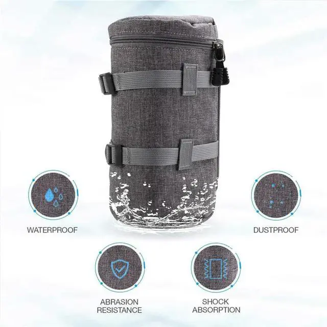 • SLR Camera Lens Bag Camera Lens Protective Case Lens Tube Bag Waterproof Shockproof Lens Bag For ,Grey