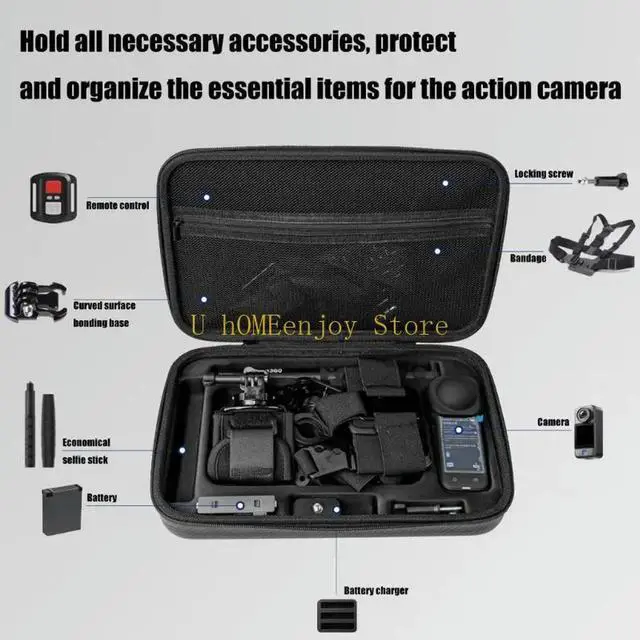 • Waterproof EVA Hard Shell Protective Case For 360 Action Camera Accessories And Travel Organization