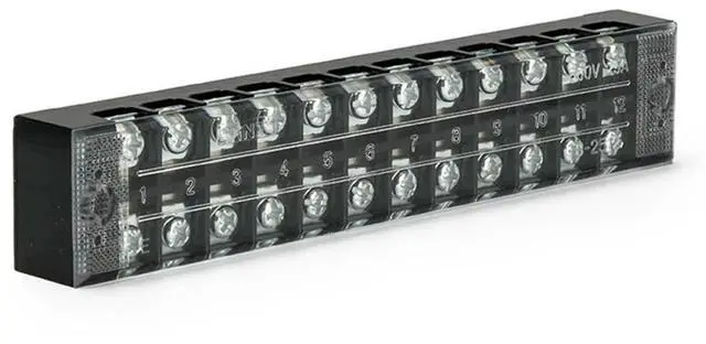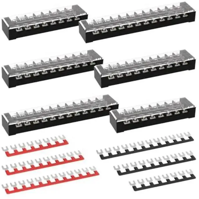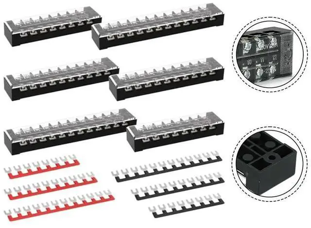 • Pack of 6 double row terminal blocks 25 amps with 8 10 12 positions for neat wiring and protection from accidental contact