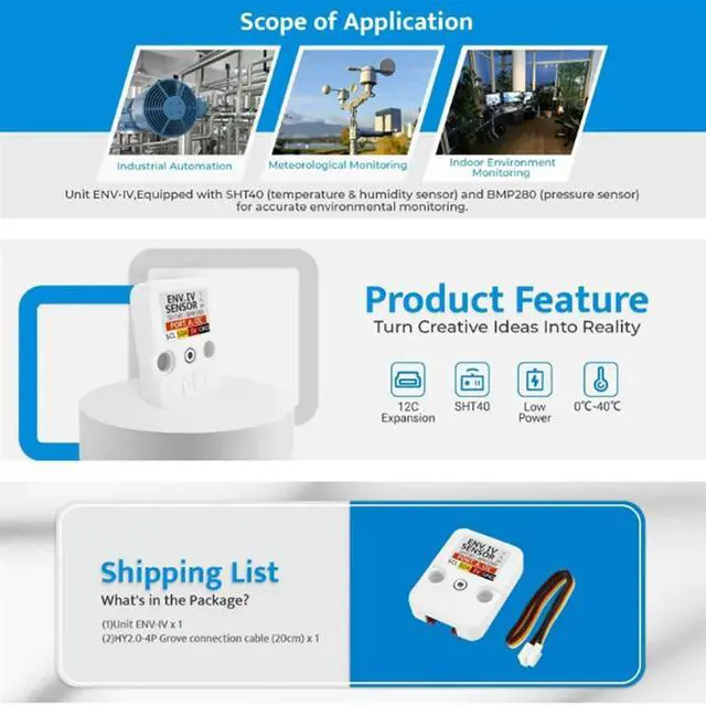 • ENV IV Sensor Unit With Temperature Humidity Air Pressure Sensor SHT40+BMP280 Environmental Temperature Humidity Sensor
