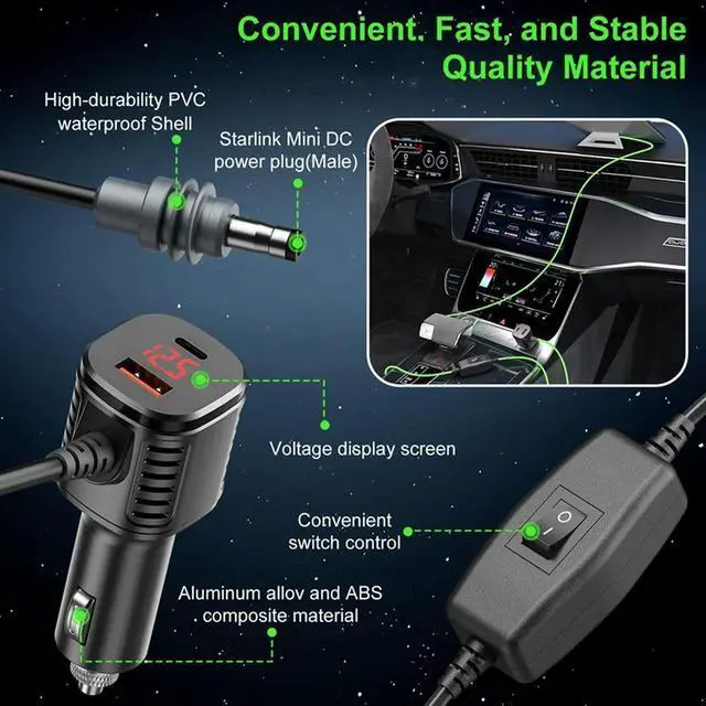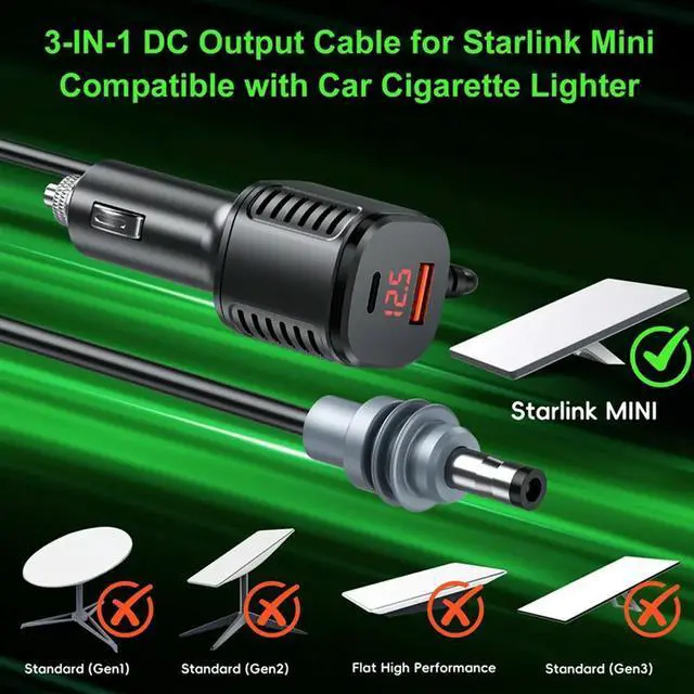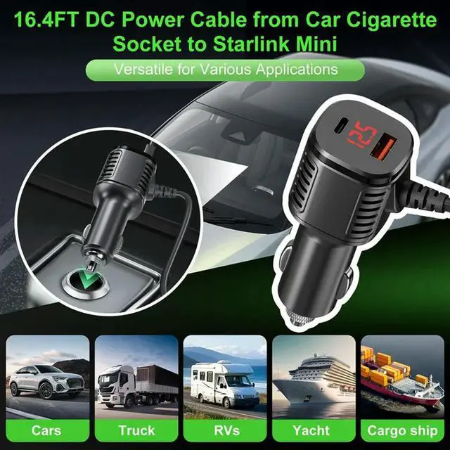• 5M For Starlink Mini Digital 3-In-1 Car Charging To DC Power Cord Multi Functional Car Adapter