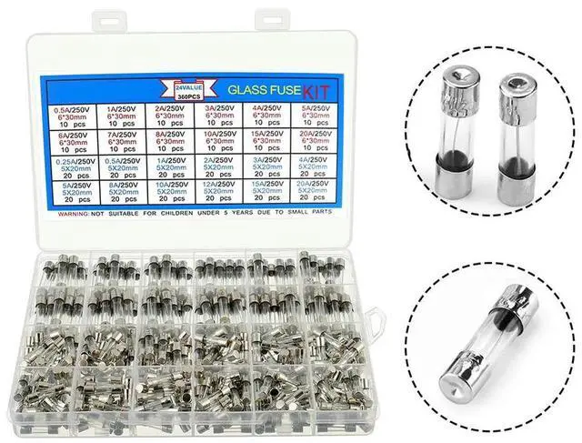 • 360pcs Fast Blow Glass Fuse Assortment Kit 24 Values Fuses Kit Tube Fuses Sets For Electrical Equipment Tool Accessory In Stock
