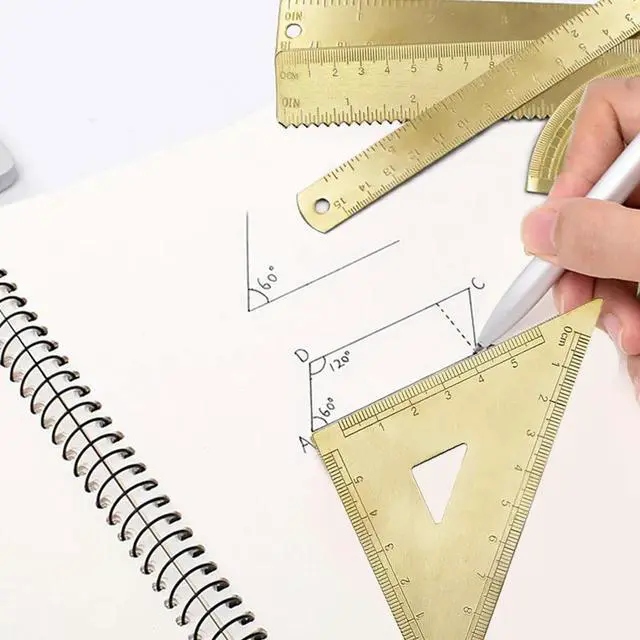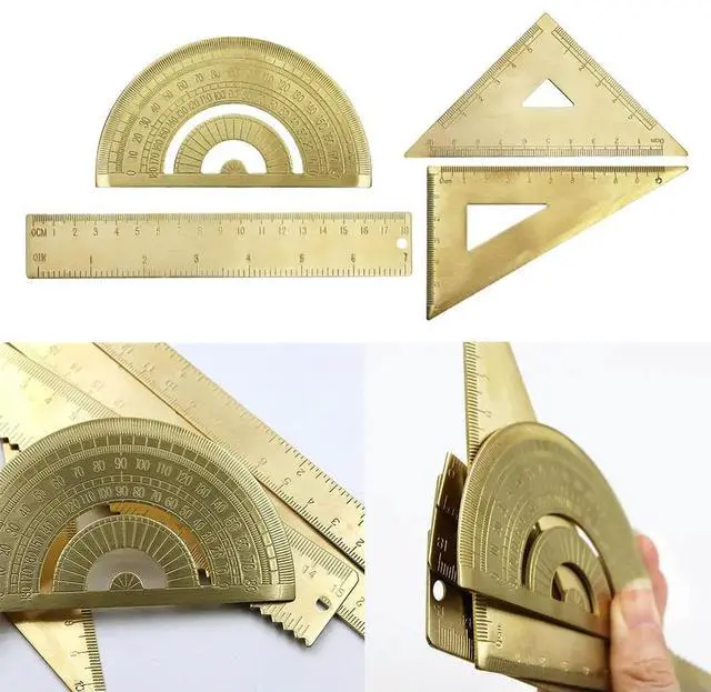 • Golden Brass Ruler Stationery Set Isosceles Triangle Protractor For Precision Measuring Layout Tools Accessory