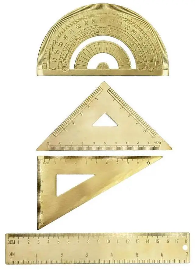 Golden Brass Ruler Stationery Set Isosceles Triangle Protractor For Precision Measuring Layout Tools Accessory