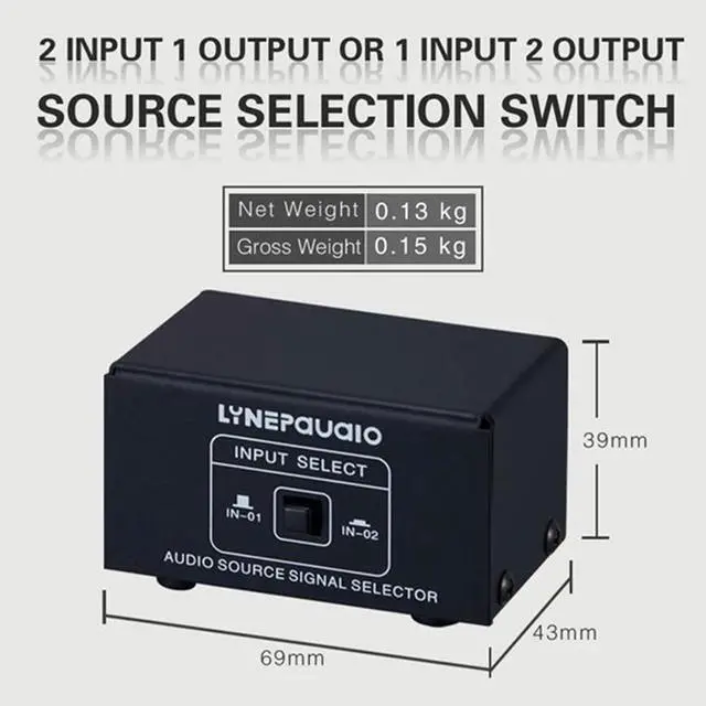 • 2 in 1 Out or 1 in 2 Out O Source Signal Selector, Switcher, Speaker, O Source, Switcher, Lossess, RCA Interface