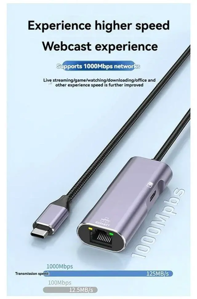 • PD32 Typec To Gigabit Network Card Mobile Phone Network Cable Converter With Charging For Live Broadcast