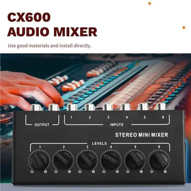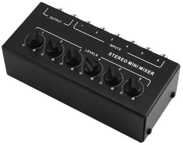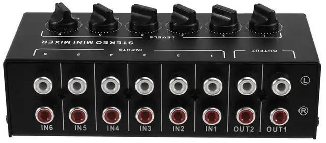 • Portable Stereo 6 Channel Passive Mixer 6 In 2 Out RCA Audio Distributor Volume Control No Needed