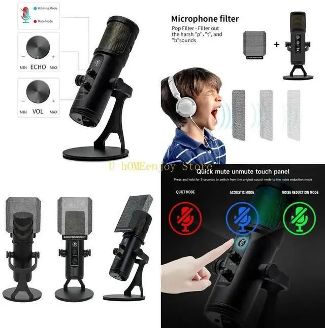 • Professional USB Microphone with RGB Lighting Noise-Cancelling Technology Mics Quiet /Acoustic/Noise Reduction Modes