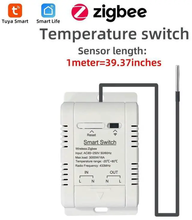 Tuya Zigbee Switch 16A Wireless Thermostat With 1M Temperature Sensor Supports Voice Control
