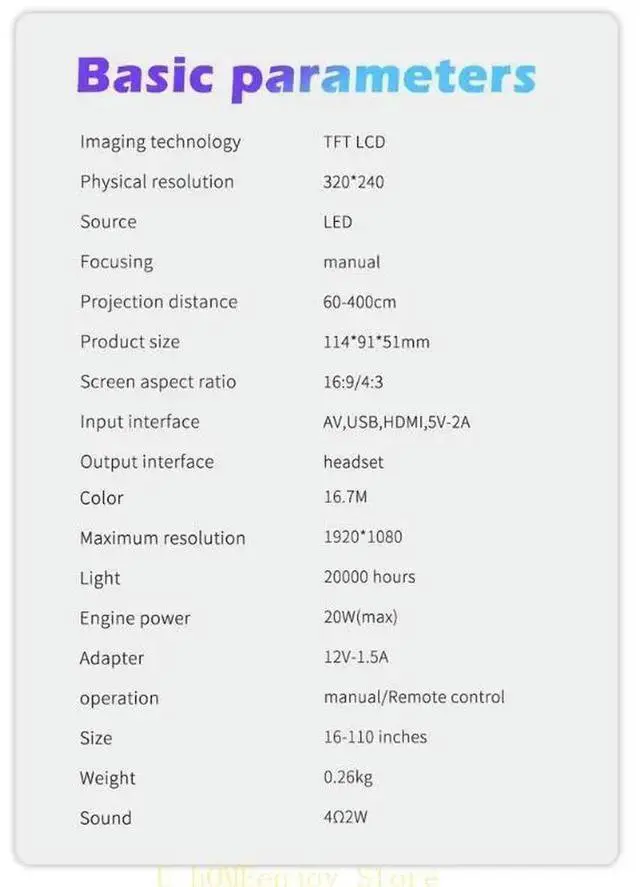 • LED Projector Full High Definition T20Video Projector Mobile Portable Movie