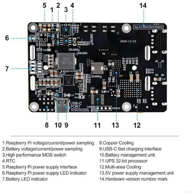 • UPS Power Management Module with RTCs Coulometer Power Supply Device for RaspberryPi 3B/3B+/4B Development Board