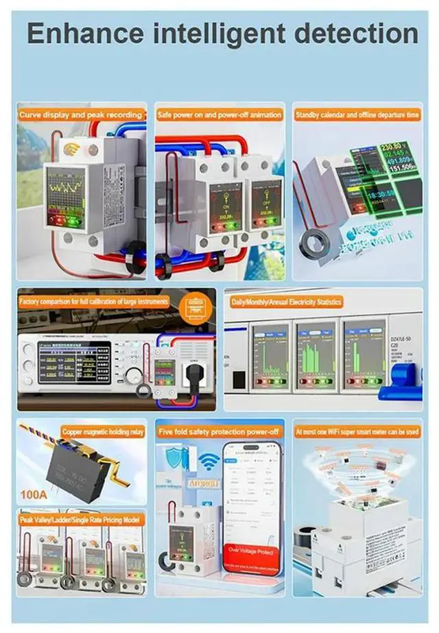 • 100A Tuya Din Rail Energy Meter Current Voltage Curve Leakage Protection Switch With Mutual Inductance Coil