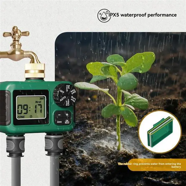 • 2 Outlet Water Timer Sprinkler Timer IP55 Waterproof Irrigation Controller With LCD Display For 2 Separate Watering Zone