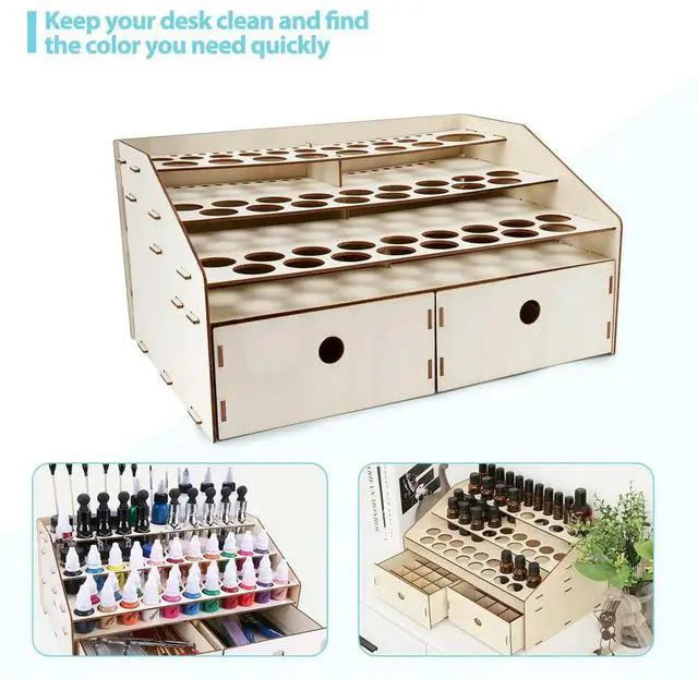 DIY Wooden Organizer Paint Bottles Display Rack Brushes Holder Stand Model Tool