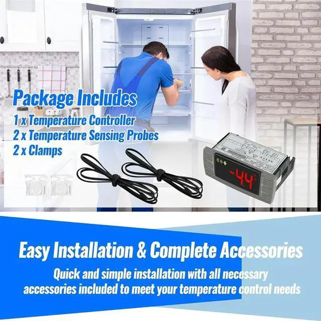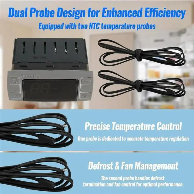 • Universal For 120V 50-60Hz Commercial Refrigerator Temperature Controller Replacement XR02CX-4N1F1 With Sensor Probe