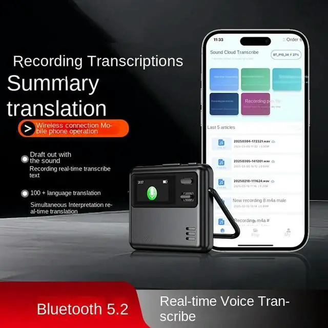 • Bluetooth AI Voice Recorder Pro With Automatic Translator Functionality, Includes Portable 32G Memory Card