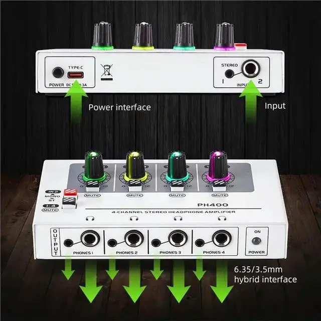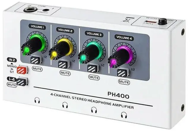 PH400 4-Channel Stereo Headphone Amplifier, Distribution System Maximum Push Of 600 Ohm Headphones RGB Lighting Effect