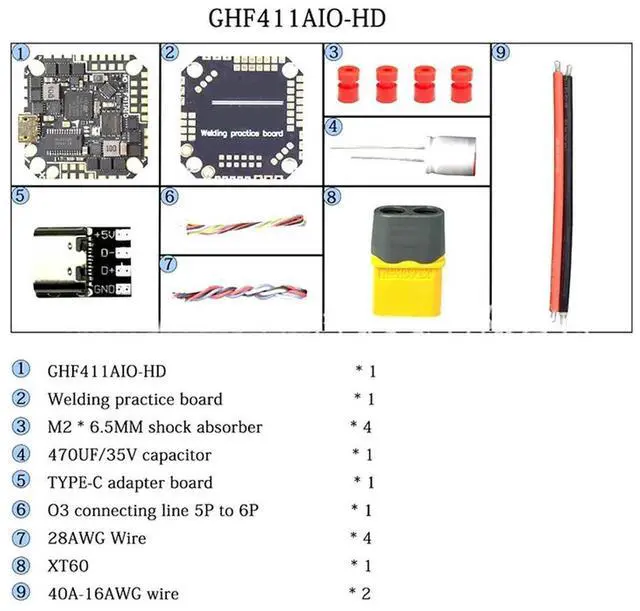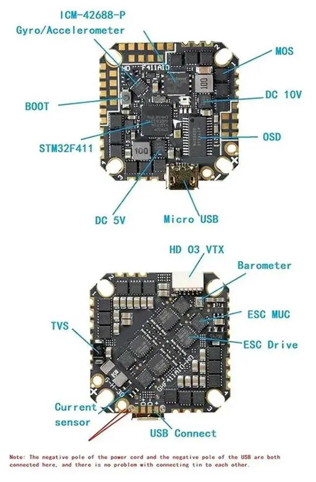 • GHF411 AIO-HD Flight Controller 40A ESC 3-6S FPV Drone Parts Withicm42688p Gyro Forfpv Toothpick Ducted Drones DIY Parts