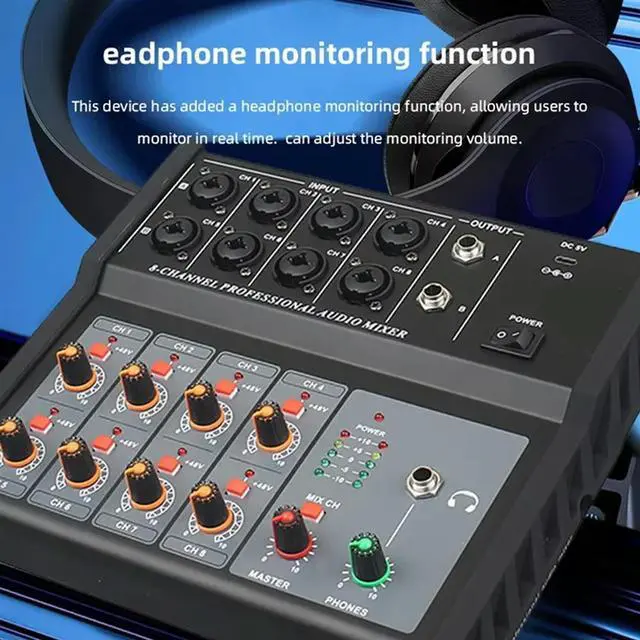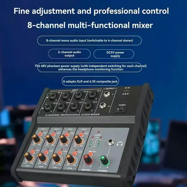 • US Plug Multi-Function Digital Mixing Console 8 Channel Audio Mixer Stereo For DJ For Recording Live Broadcast Sound Mixers