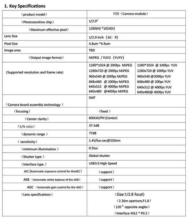 • USB3.0 Global Shutter Camera 1.3MP 6Mm Industrial Camera Module 400 Frames Driver-Free For WINXP/7 8 10 LINUX Android