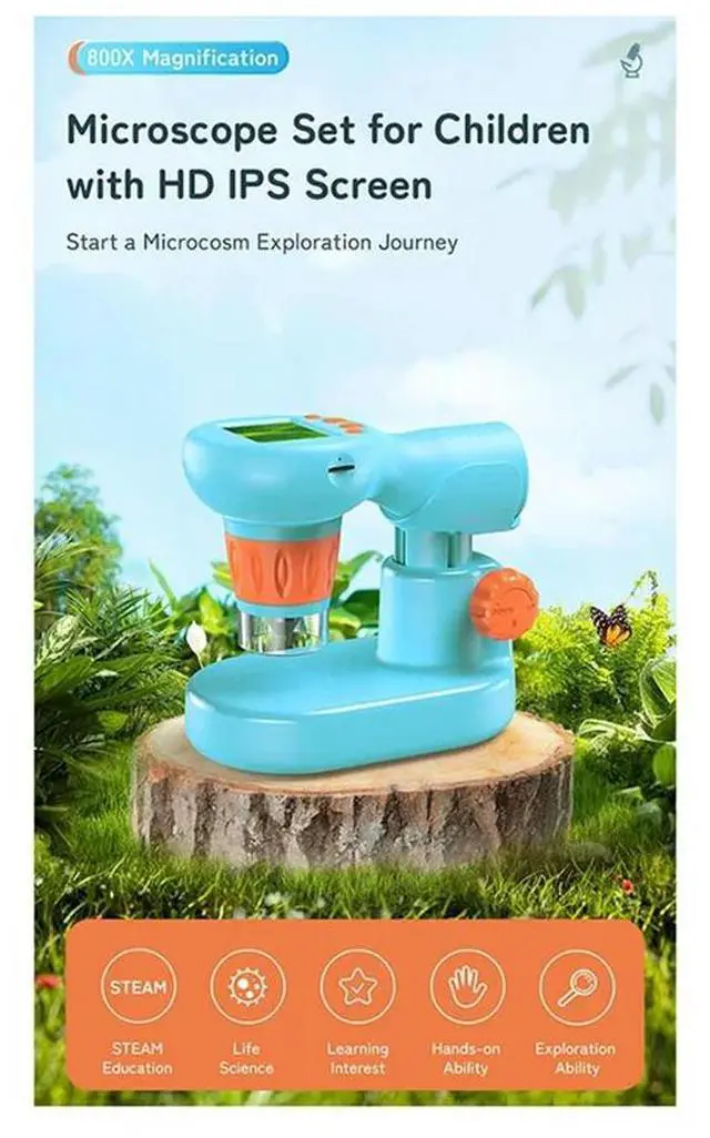 Digital Microscope 800X Kit For Kids 2" LCD Screen Portable USB To PC Microscope Birthday Gift