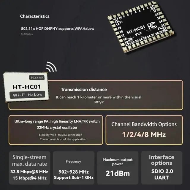 • High-Speed Dual Band HC01 Wi-Fi Halow Modules, 902-928MHZ Long Range Wireless Connectivity, Pack Of 3 For Iot