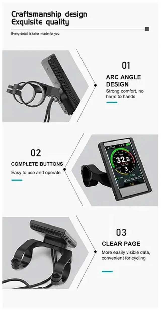 • Electric Bike LCD Color Display 850C UART Protocol For Bafang BBS01B BBS 02B BBSHD Mid Motor Conversion 5Pin Female