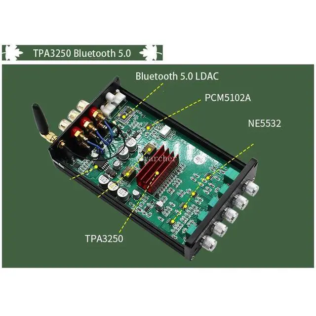 • TPA3250 2.1 HIFI Bluetooth 5.0 Digital Power Amplifier QCC5125 70W*2+130W PCM5102A DAC Decoding DC19-32V