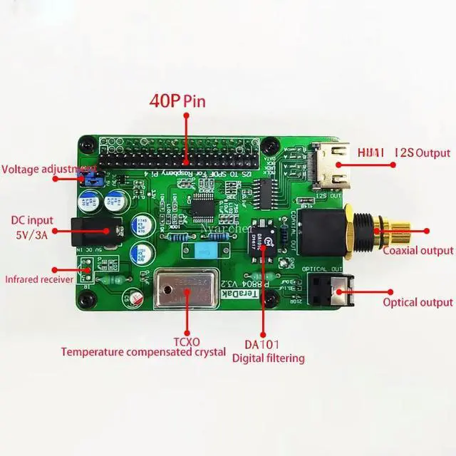 • I2S Coaxial Optical HDMI-Compatible DAC Digital Audio Sound Card Expansion Decode Board DSD512 for Raspberry pi4B Pi5