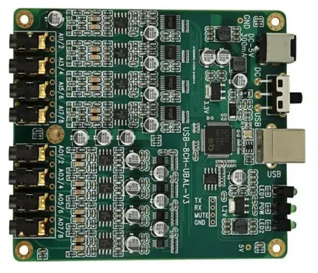 • 8 channel USB playback recording IIS TDM master-slave ASIO XMOS Soundcheck measurement custom sound card