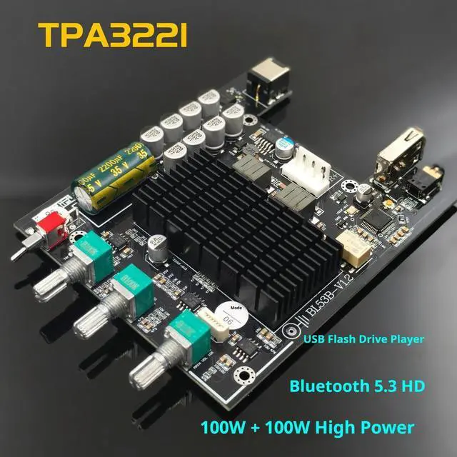 • TPA3221 high-power HIFI sound all-round king power amplifier board, Bluetooth 5.3 U disk player, power amplifier