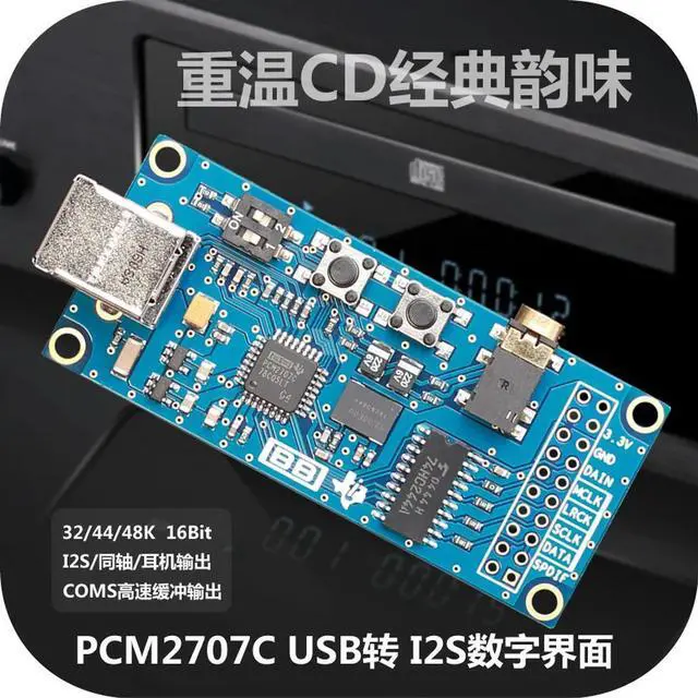 PCM2707C USB to I2S digital interface USB sound card DAC compatible with Italian PCM2706 XMOS