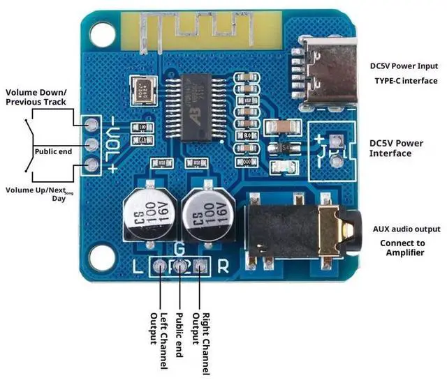 • DIY Bluetooth 5.0 Audio Receiver Module MP3 Bluetooth Decoding Board Car Speaker Audio Amplifier Board
